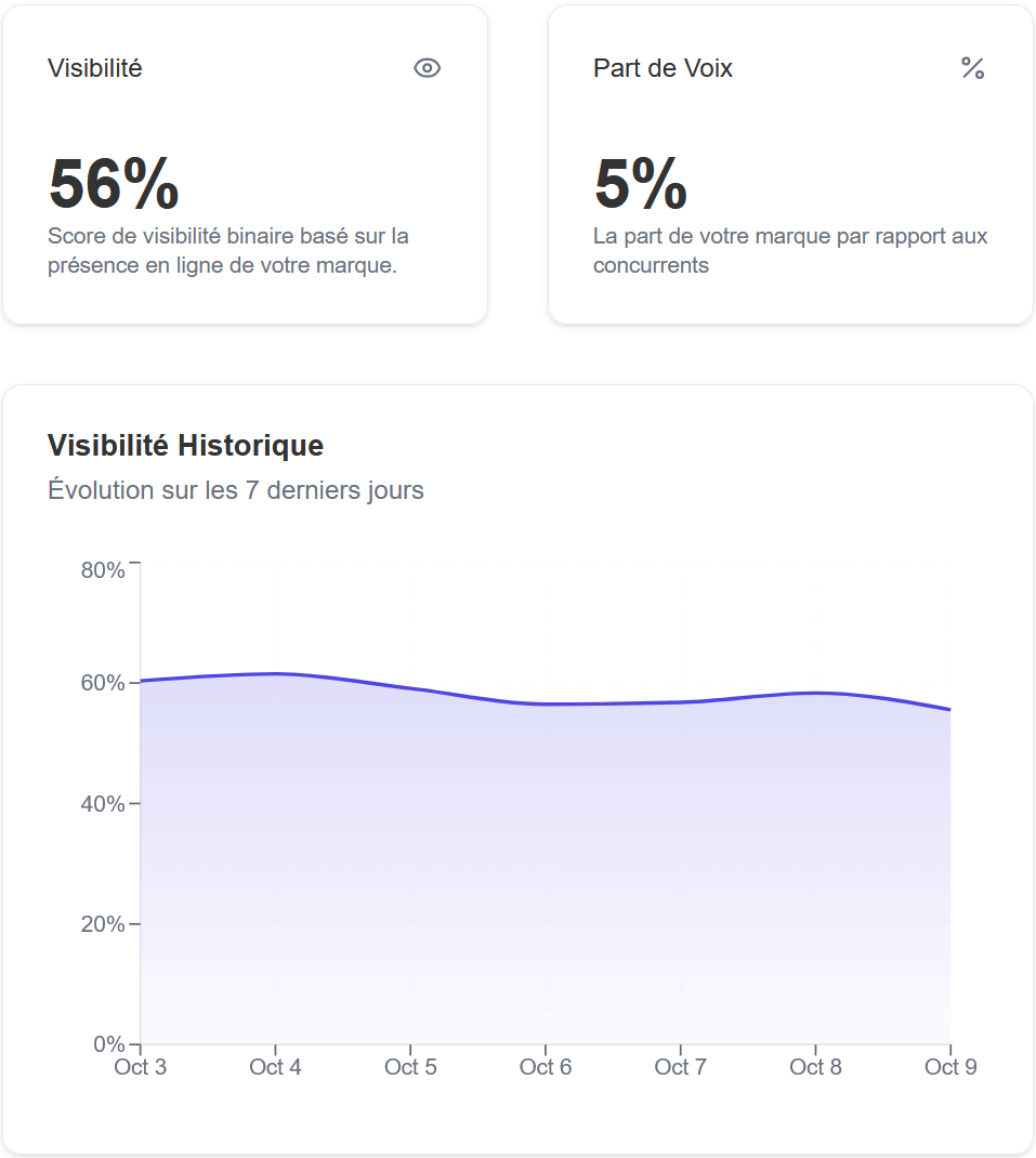 Mesure du pourcentage d’apparition de votre marque dans les réponses des IA
